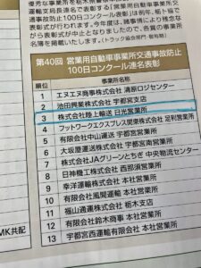 第40回営業用自動車事業所交通事故防止100日コンクールにおいて、県警本部長ならびに栃木運輸支局長より連名で表彰されました。